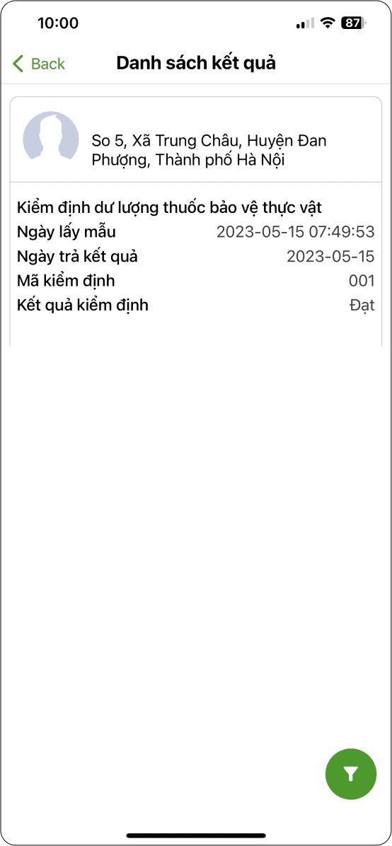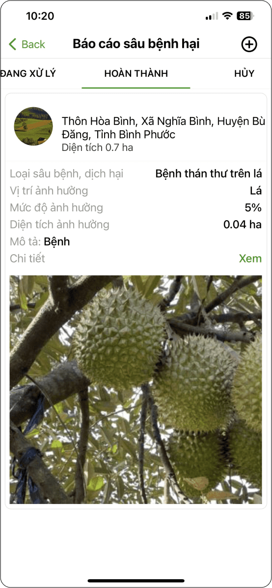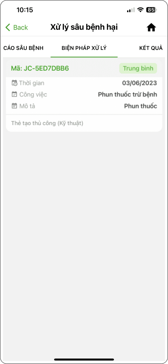 Khi nông hộ thực hiện hoàn thành, kết quả công việc được gửi đến kỹ thuật phụ trách xử lý sâu bệnh kiểm tra: