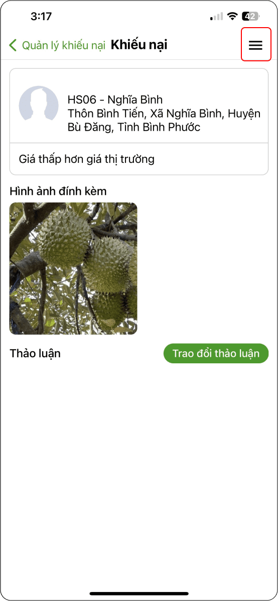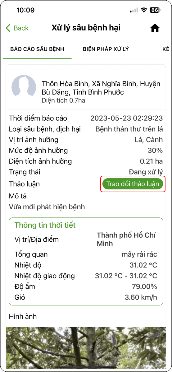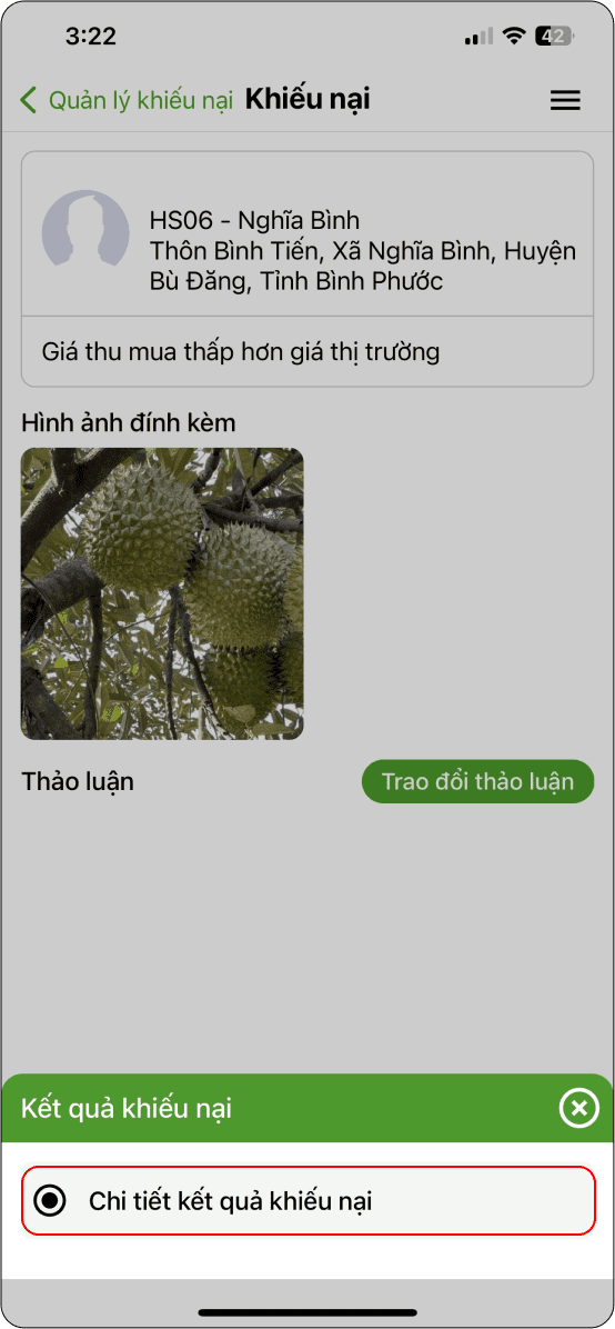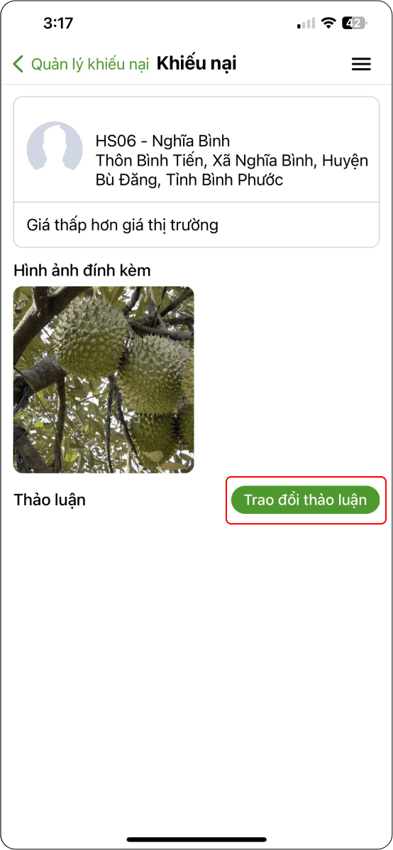 Trong quá trình xử lý khiếu nại kỹ thuật và nông hộ có thể thảo luận và tương tác với nhau qua chức năng “Trao đổi thảo luận”.