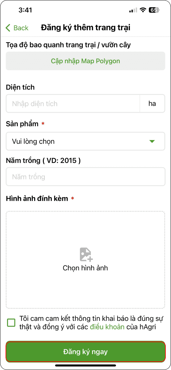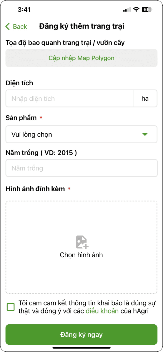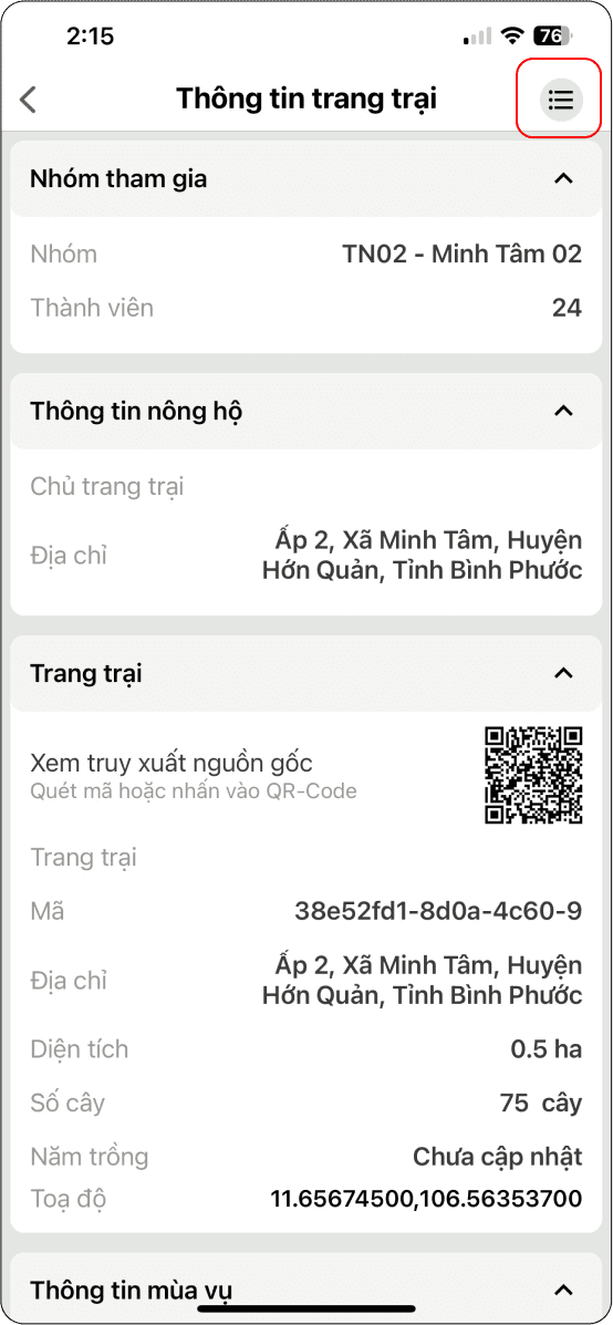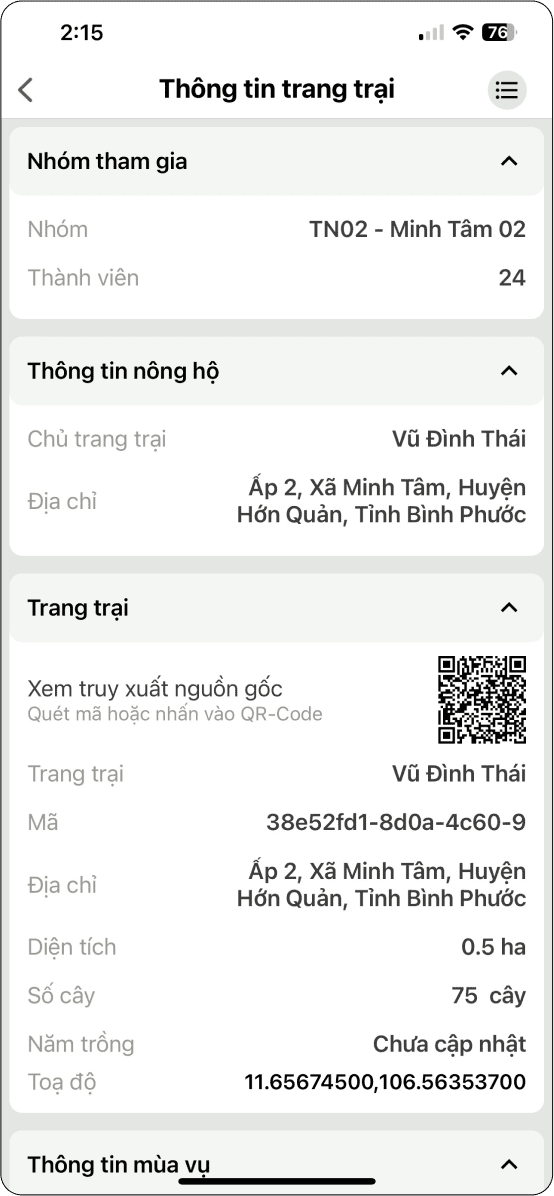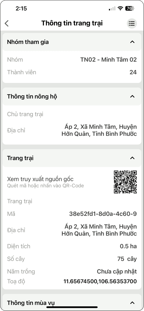 Để thông tin được đầy đủ chính xác, các tính toán vật tư đầu vào và truy xuất nguồn gốc được chính xác, nông hộ phải cập nhật đầy đủ thông tin trang trại của mình trên hệ thống.