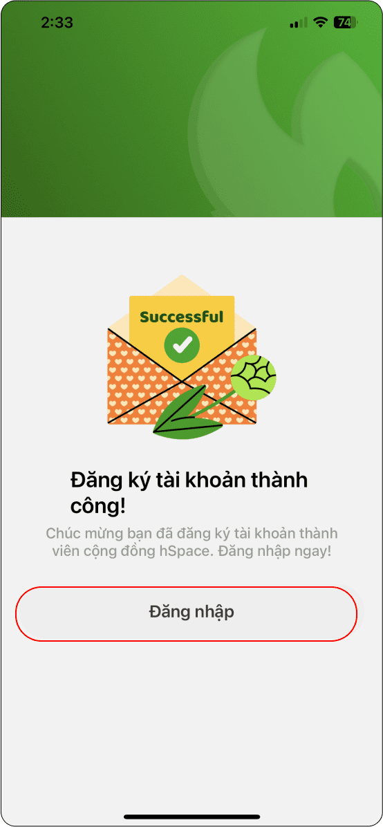 → Thông báo đăng ký thành công → “Đăng nhập ngay” (Hình 4)