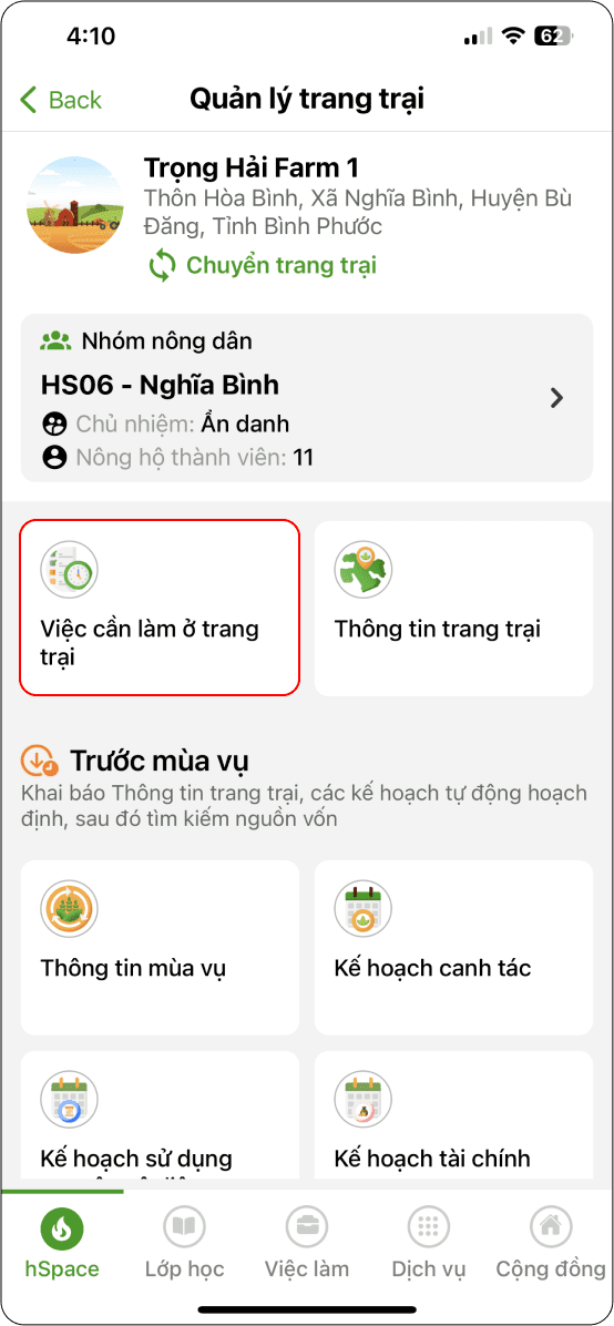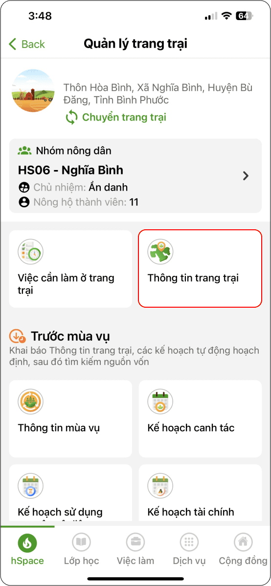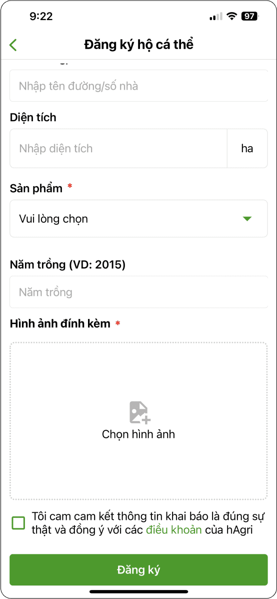 Sau khi đăng ký tài khoản, nông hộ phải thực hiện đăng ký định danh vai trò nông hộ thành viên của trang trại với hSpace.
