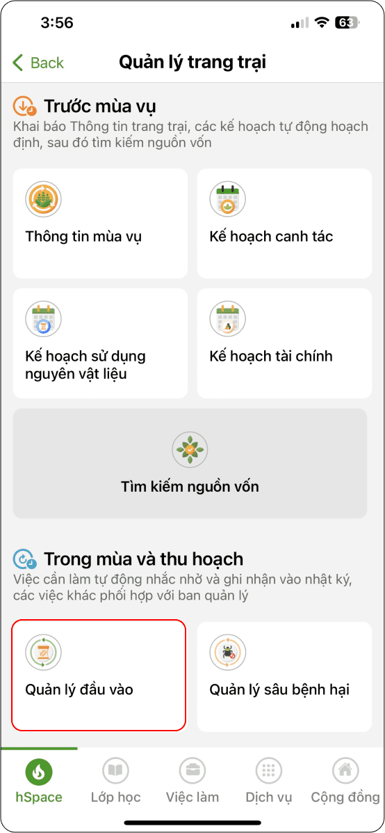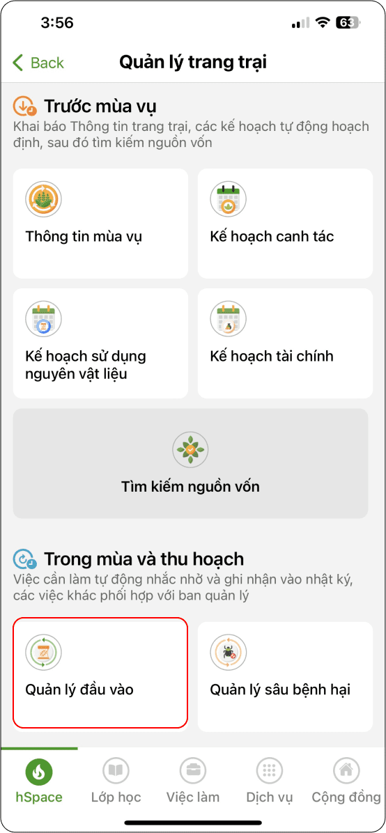 Nhấn “Quản lý đầu vào” (Hình 1).