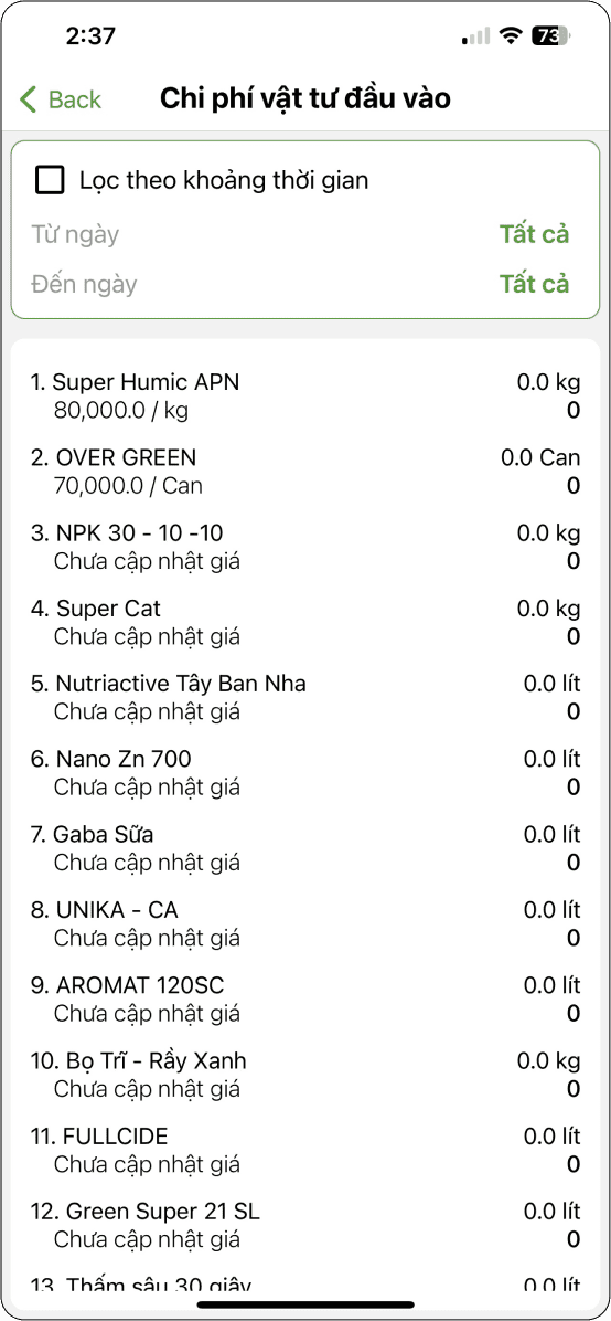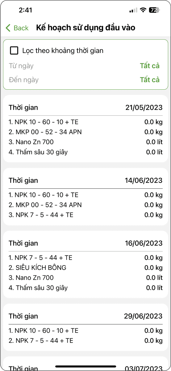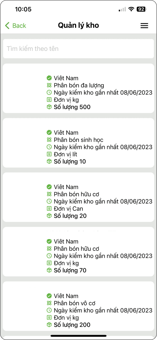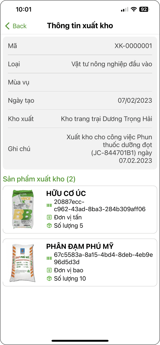 Hệ thống giúp nông hộ quản lý tất cả vật tư đầu vào được sử dụng tại trang trại.