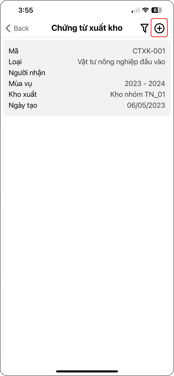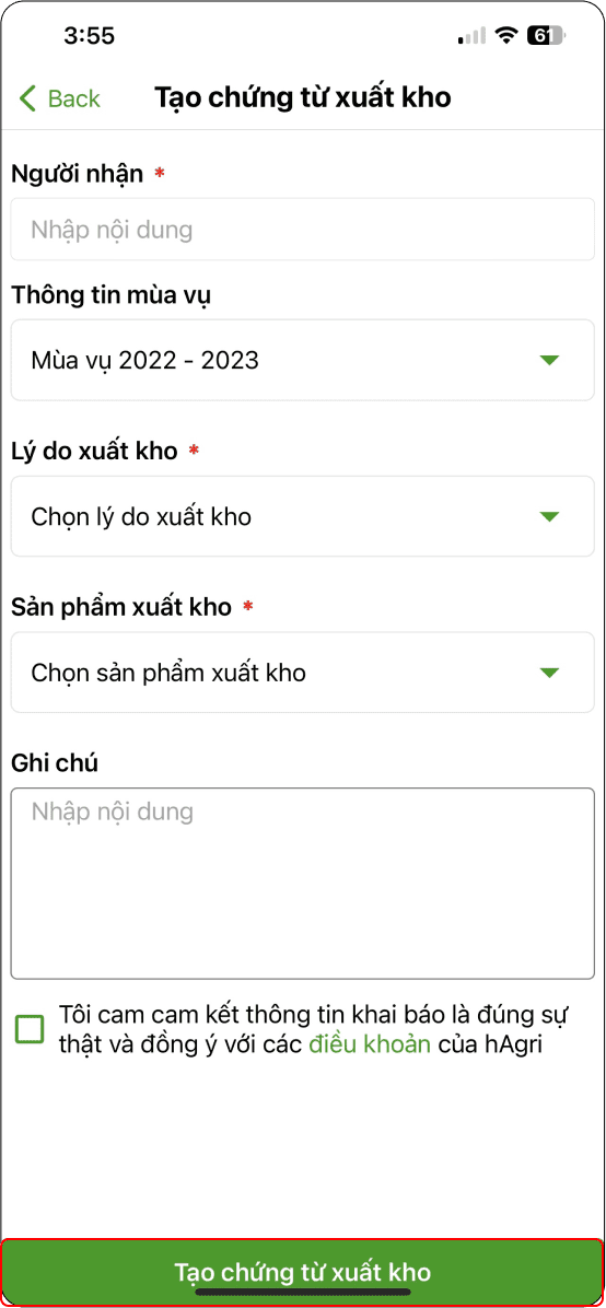 Ngoài những chứng từ được tạo tự động từ thực hiện công việc, nông hộ có thể tự tạo chứng từ xuất kho như sau: