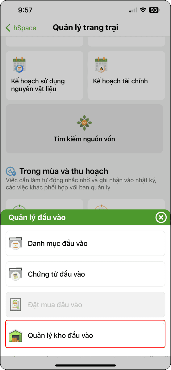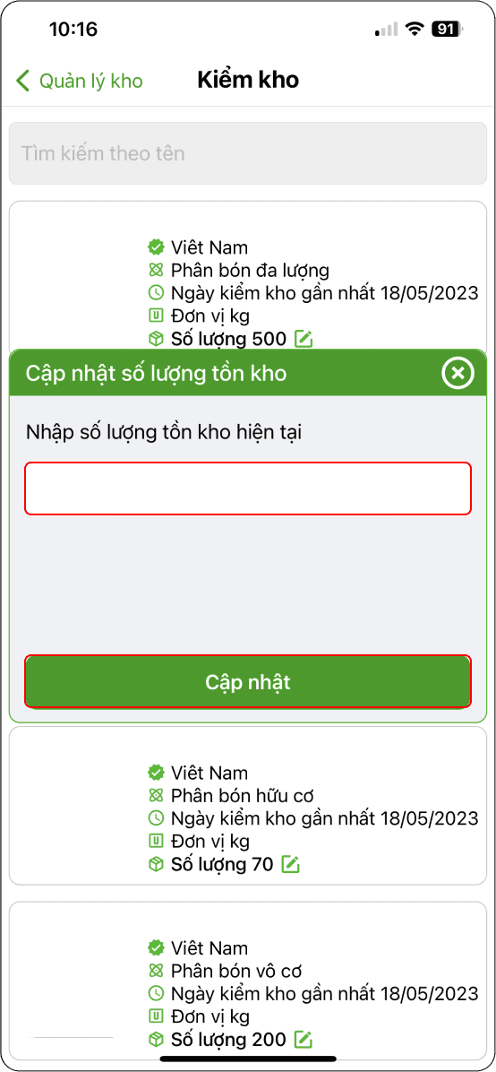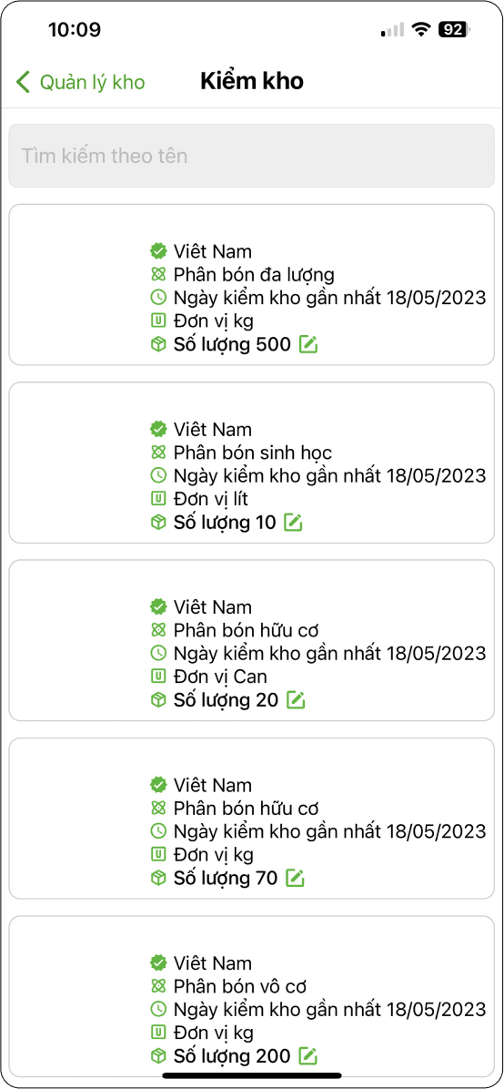 Mỗi hộ nông dân sẽ được hệ thống cung cấp Kho vật tư đầu vào, giúp nông hộ dễ dàng quản lý số lượng vật tư tại trang trại.