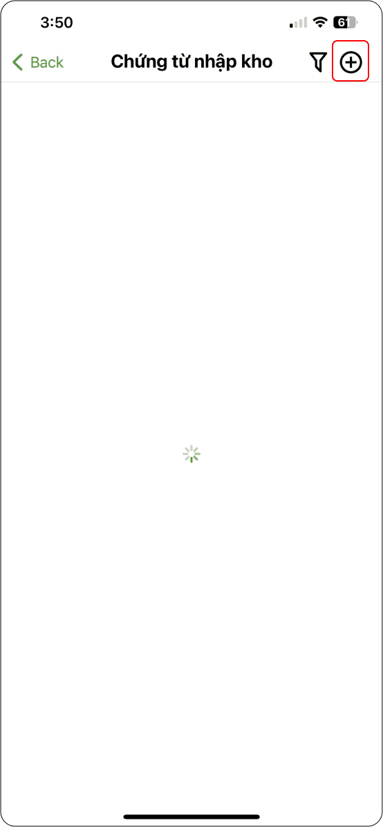 Tại màn hình “Chứng từ nhập kho ” (Hình 1) → Chọn biểu tượng dấu “+” (Hình 1) → Nhập thông tin nhập kho theo yêu cầu (Hình 2) → Xác nhận thông tin → Tạo chứng từ nhập kho. Hoàn thành tạo chứng từ nhập kho (Hình 3).