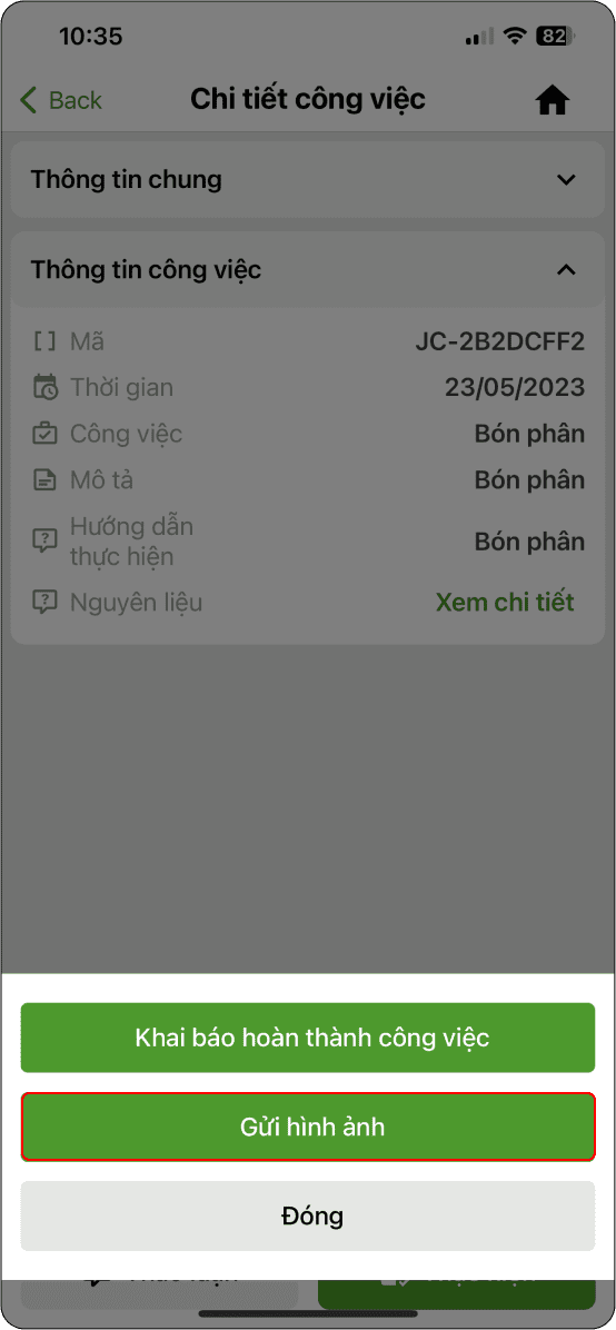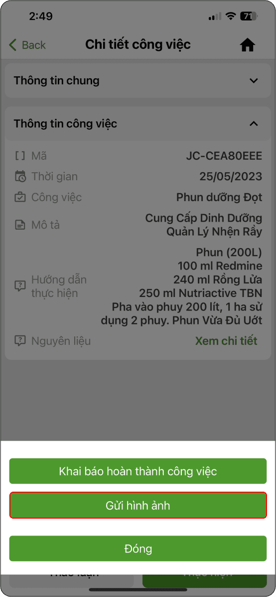 → Thực hiện công việc xong, nhấn gửi hình ảnh (Hình 5).