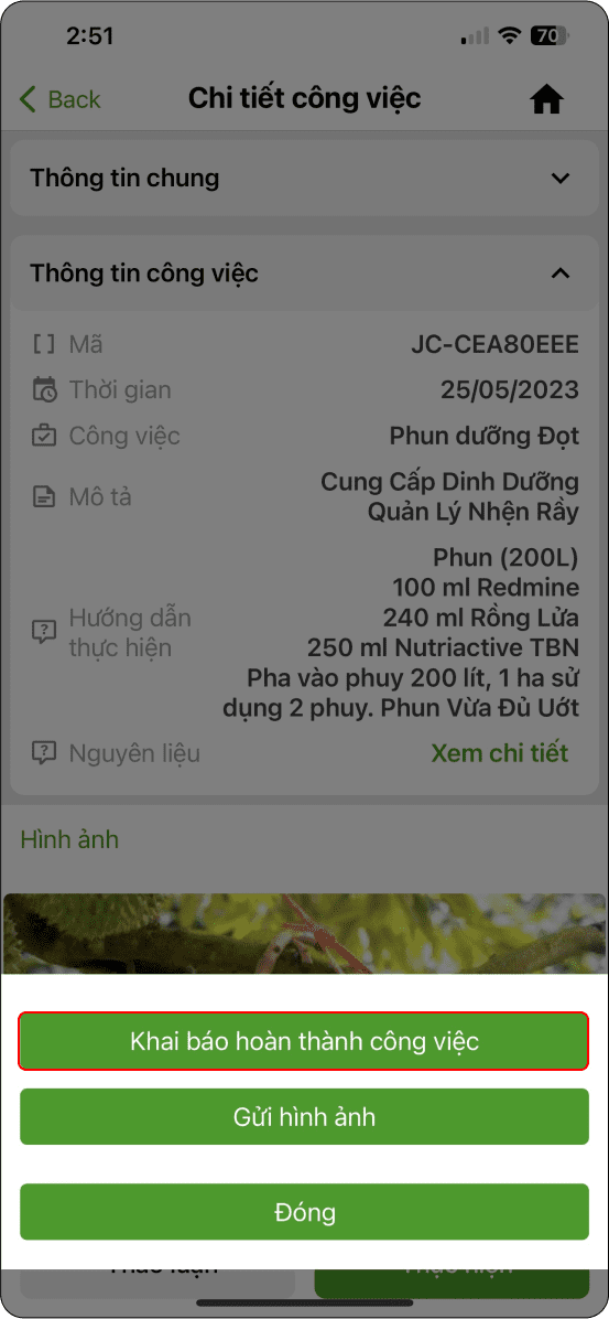 → Nhấn “Khai báo hoàn thành công việc” (Hình 7).