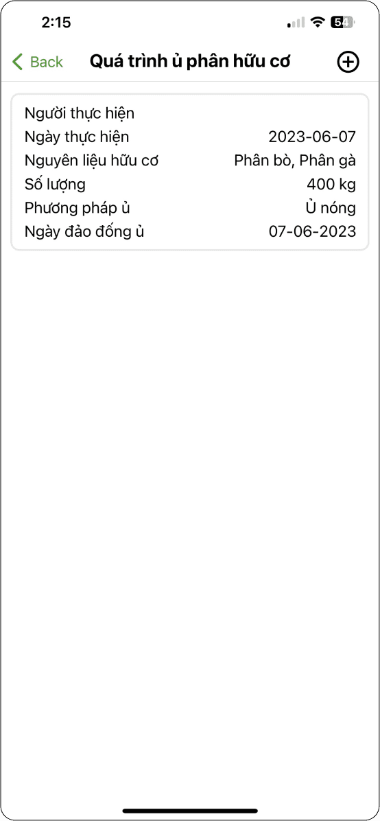 Trong mùa vụ canh tác, ngoài những vật tư đầu vào từ các nhà cung cấp, tại trang trại sử dụng phân hữu cơ ủ tự cung cấp. Để chứng minh hiệu quả, đạt chuẩn canh tác và được phép sử dụng trên trang trại, nông hộ phải ghi nhận quá trình ủ phân hữu cơ giúp ghi nhận quá trình ủ phân, kỹ thuật của nhóm nông dân dễ dàng quản lý và cung cấp thông tin cho hồ sơ quản lý vùng trồng.