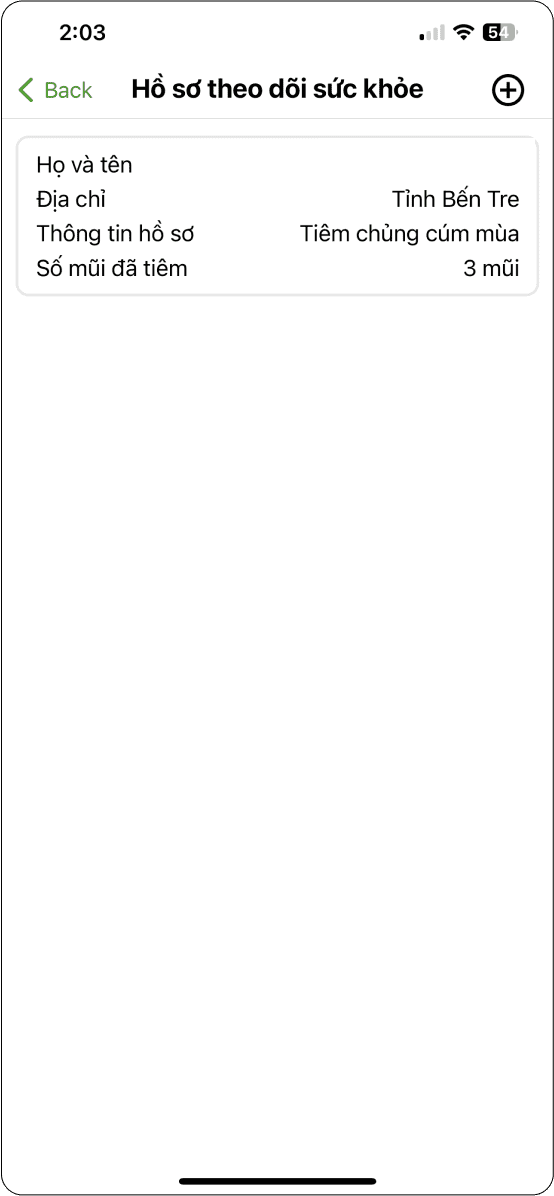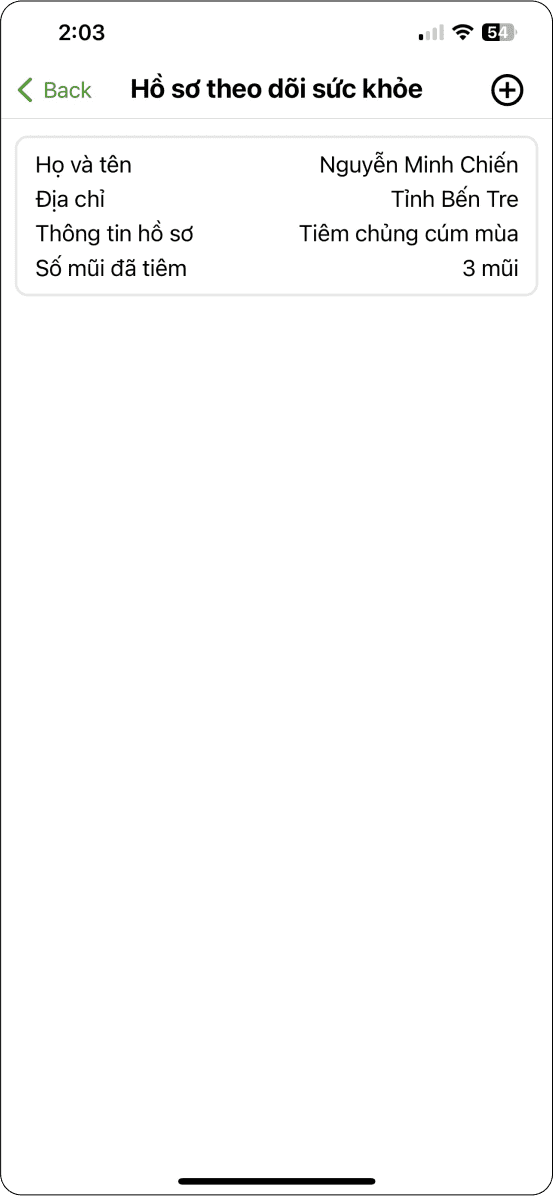 Để khai báo hồ sơ sức khỏe cho người lao động mới, tại màn hình “Hồ sơ theo dõi sức khỏe” → Chọn biểu tượng dấu “+” (Hình 1) → Nhập đầy đủ thông tin (Hình 2)→ Khai báo. Hoàn thành khai báo hồ sơ sức khỏe (Hình 3).