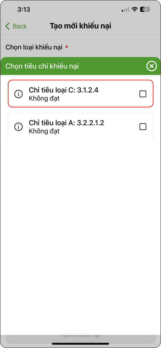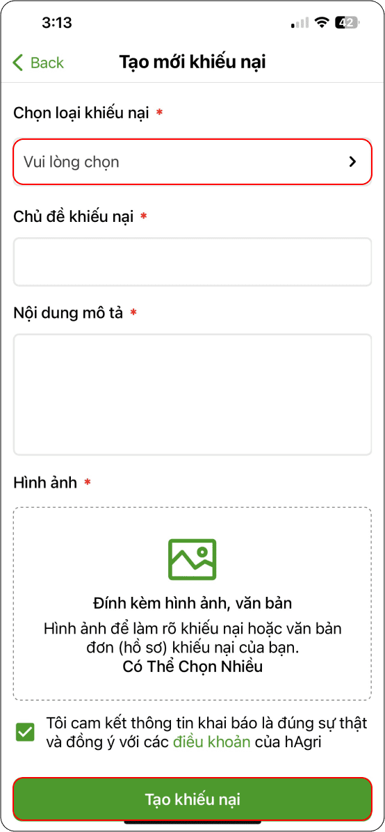→ Đánh dấu đồng ý (Hình 3) → Tạo khiếu nại