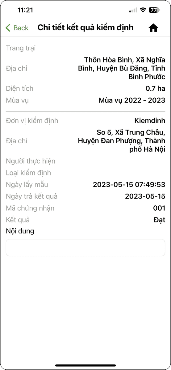 Người dùng xem thông tin, các hồ sơ chứng nhận của trang trại đảm bảo chất lượng nông sản đạt tiêu chuẩn chất lượng trên Truy xuất nguồn gốc.