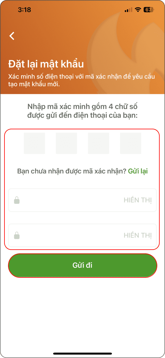 Tại màn hình đăng nhập, chọn “Quên mật khẩu” → Nhập số điện thoại của người dùng đã đăng ký tài khoản → chọn “Tiếp tục” → Nhập thông tin yêu cầu → Gửi đi để hoàn thành lấy lại mật khẩu.