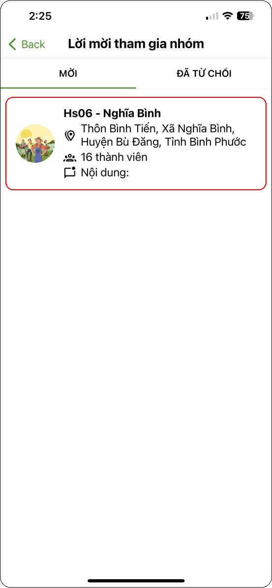 Nếu nông hộ không chủ động tham gia nhóm, các nhóm nông dân, HTX, công ty quản lý cùng trồng sẽ mời họ tham gia, người dùng chấp nhận lời mời để tham gia nhóm.