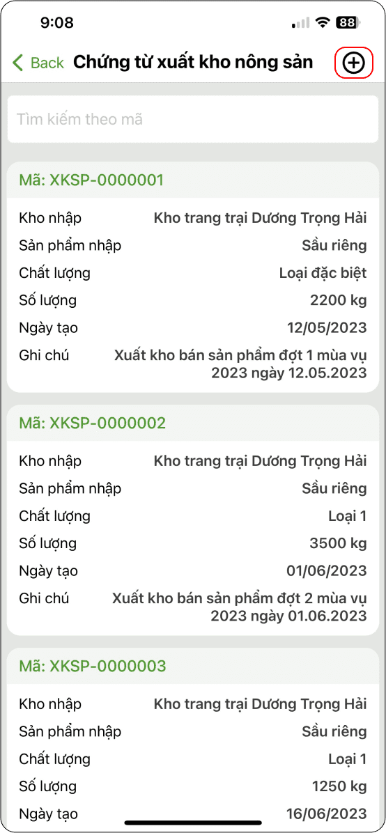 Xuất kho nông sản giúp nông hộ theo dõi được số lượng nông sản được bán hoặc xuất kho khỏi trang trại, tránh thất thoát và quản lý lượng nông sản tồn kho. Trang trại tạo chứng từ xuất kho nông sản như sau: