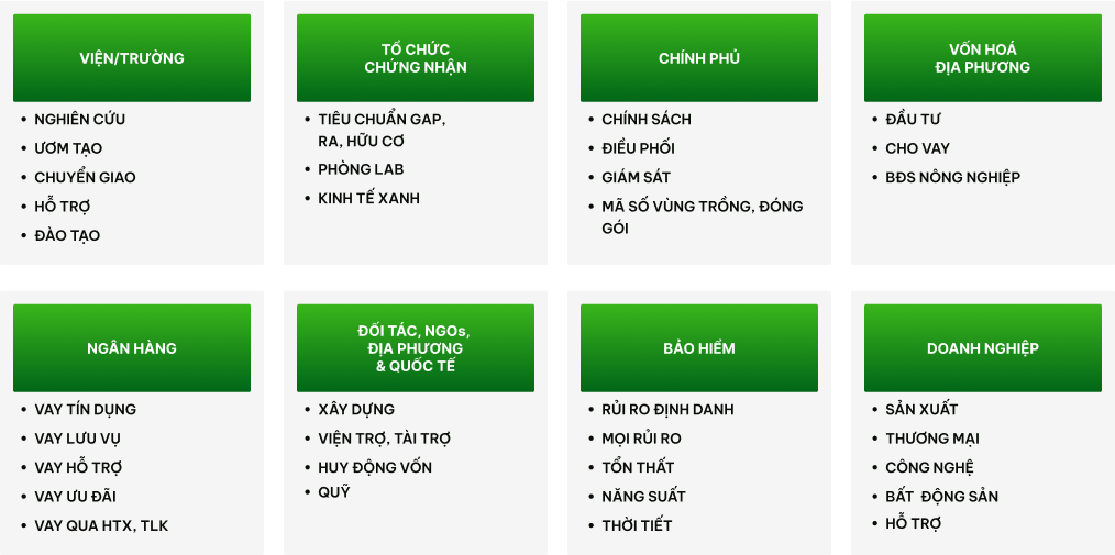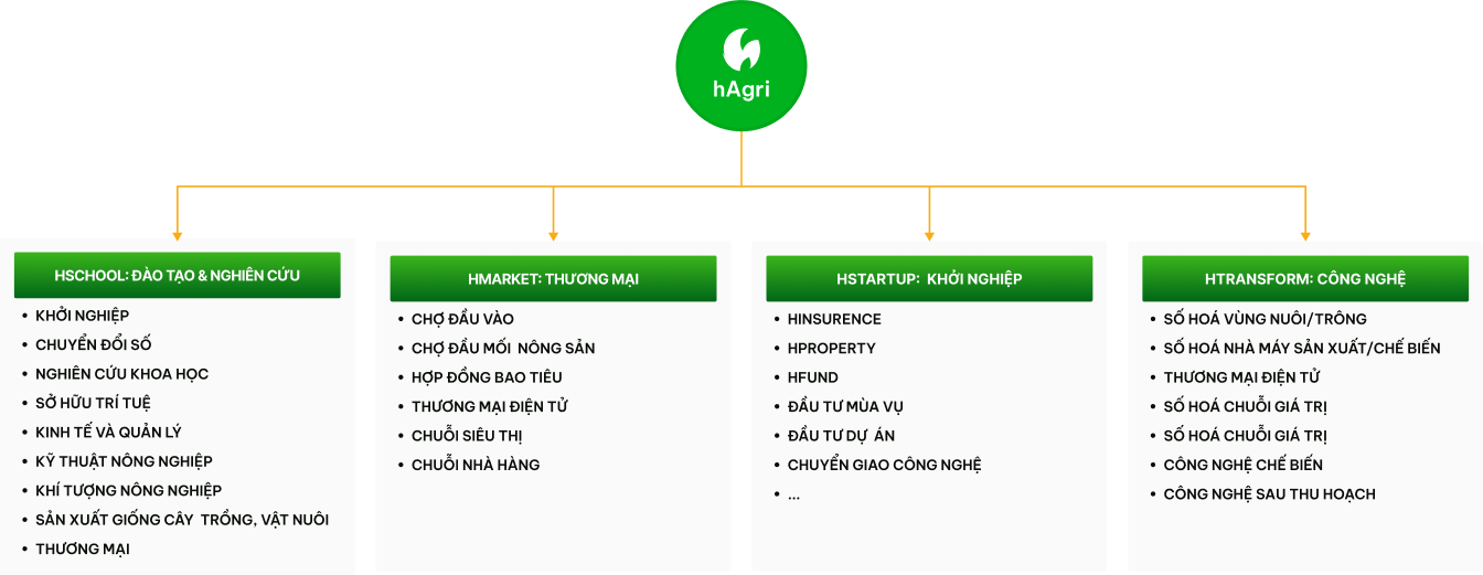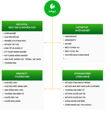 Trên cơ sở đó hSpace phát triển hệ sinh thái nông nghiệp số nhằm góp phần vào công cuộc chuyển đổi số ngành nông nghiệp, mang khoa học vào thực tiễn ngành nông nghiệp, cùng các thành phần khác góp phần vào thực hiện hoá các chính sách, định hướng của Chính phủ, của Nhà nước và các chương trình hành động quốc giá, các thành phần với những kế hoạch hành động của hSpace như sau: