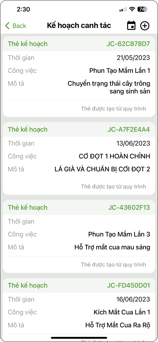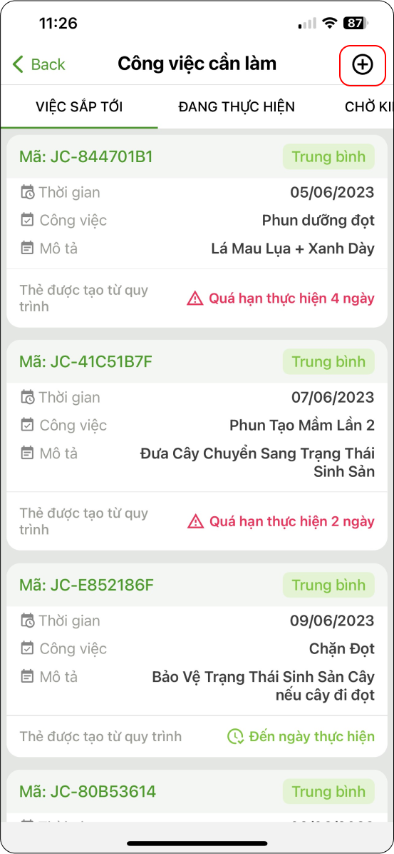 → Đến ngày sinh thẻ, hệ thống tạo thẻ công việc cho nông hộ nằm trong chức năng “Việc cần làm ở trang trại” (Hình 3) → Thẻ công việc (Hình 4).