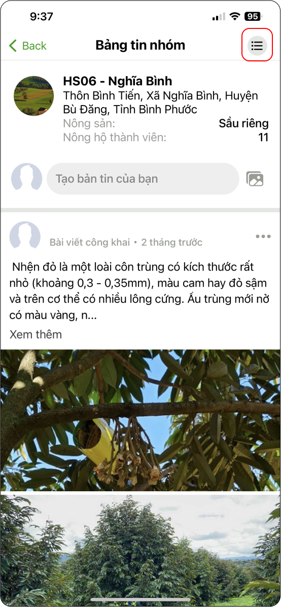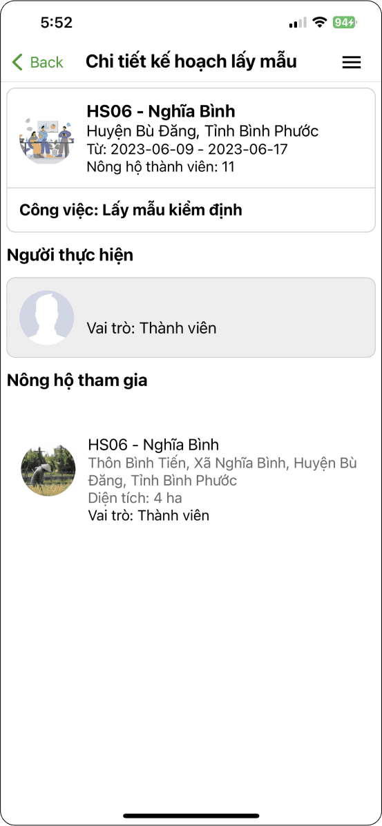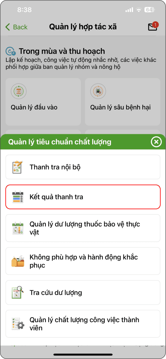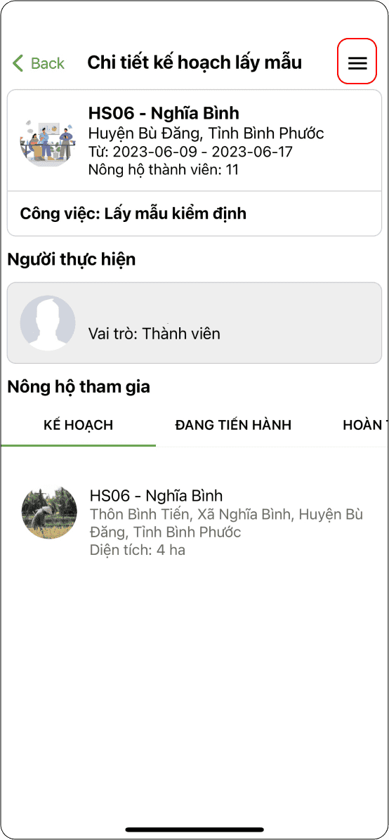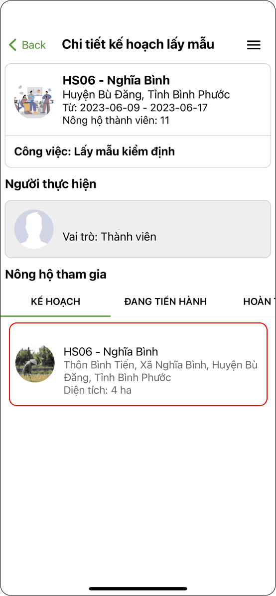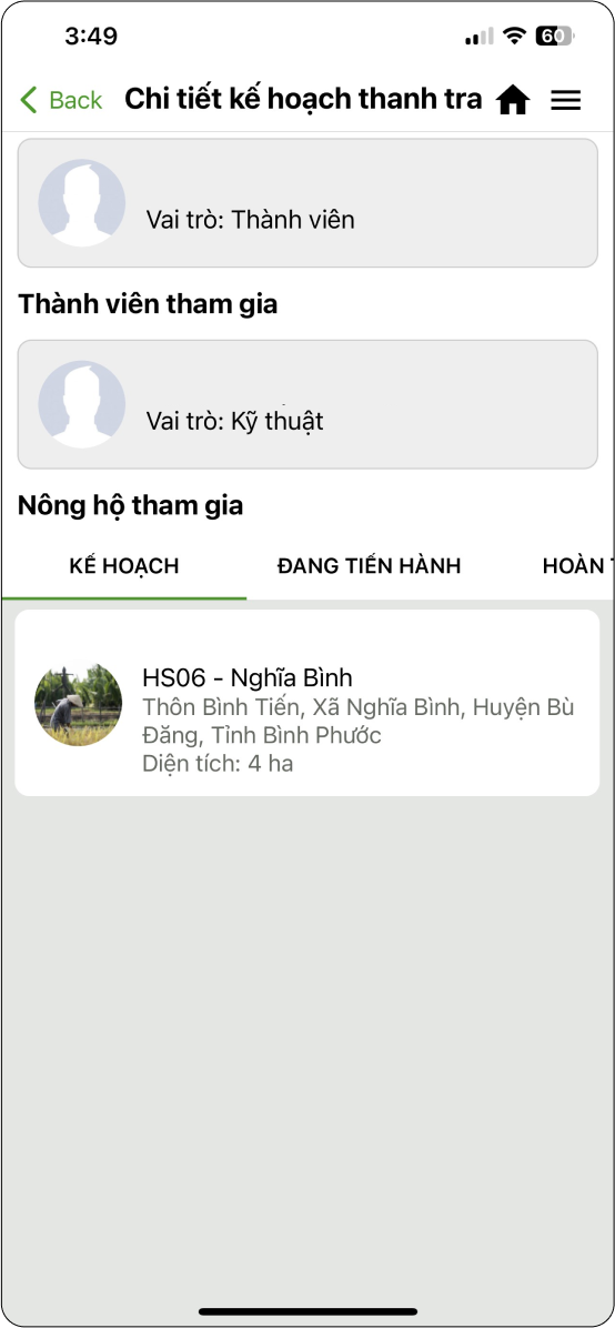 B4: Kỹ thuật và nông hộ thành viên xem lịch thanh tra:
