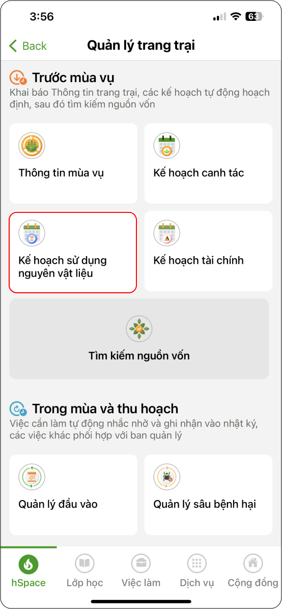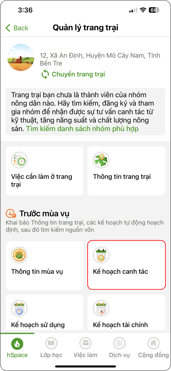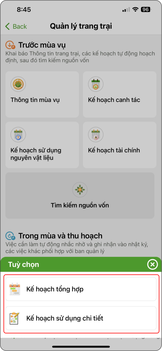 Nhấn vào “Kế hoạch canh tác” (Hình 1).