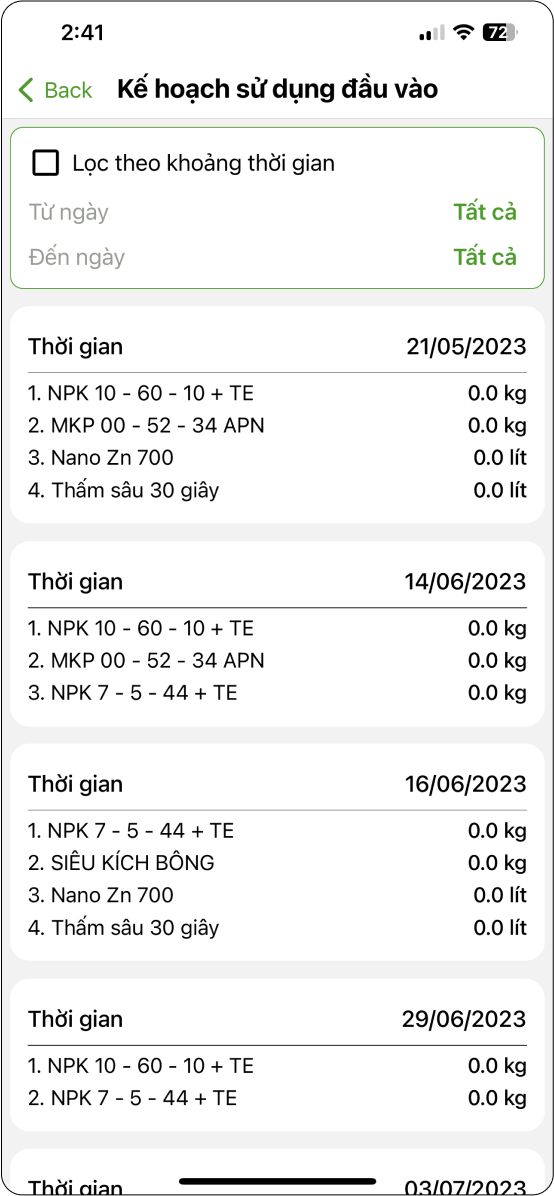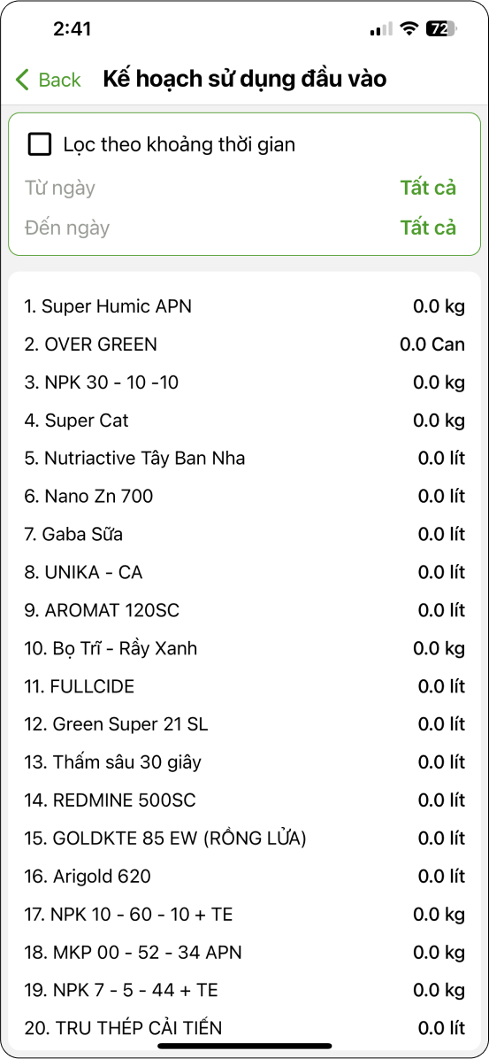 Nông hộ khai báo danh mục đầu vào của nhóm