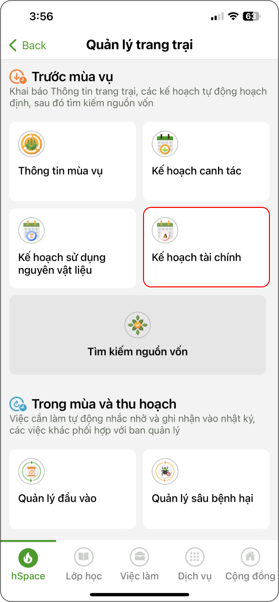 Nhấn vào “Kế hoạch tài chính” (Hình 1) → Kế hoạch tài chính (Hình 2).