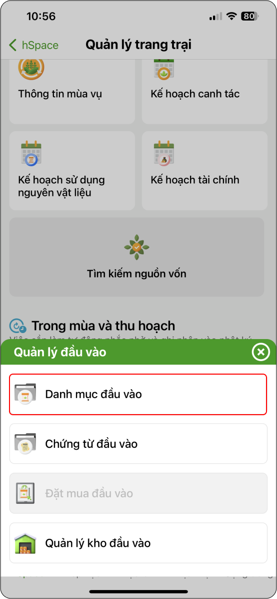 Nhấn “Quản lý đầu vào” (Hình 1).