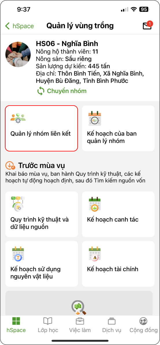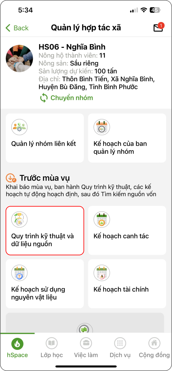 Nông hộ tạo tài khoản trên hệ thống hSpace