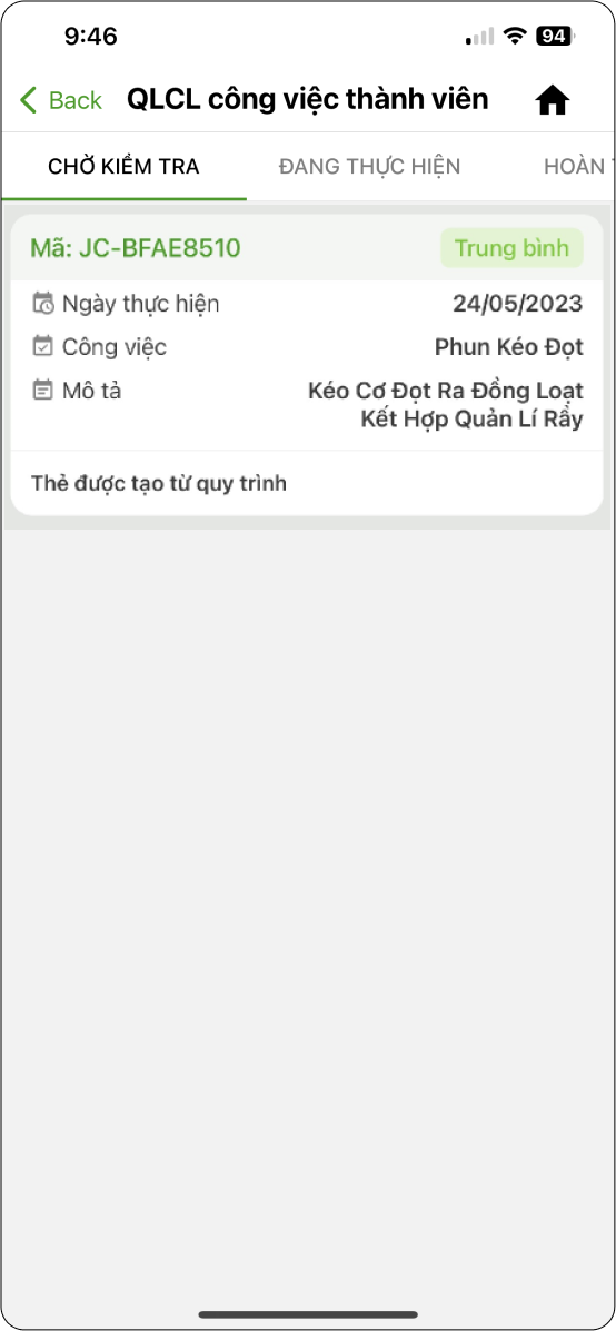 - Nếu công việc cần kỹ thuật kiểm tra thì → chuyển qua trạng thái “Chờ kiểm tra” (Hình 10).