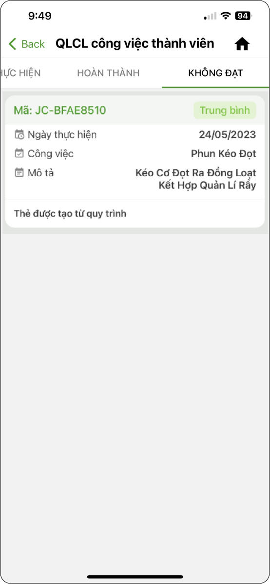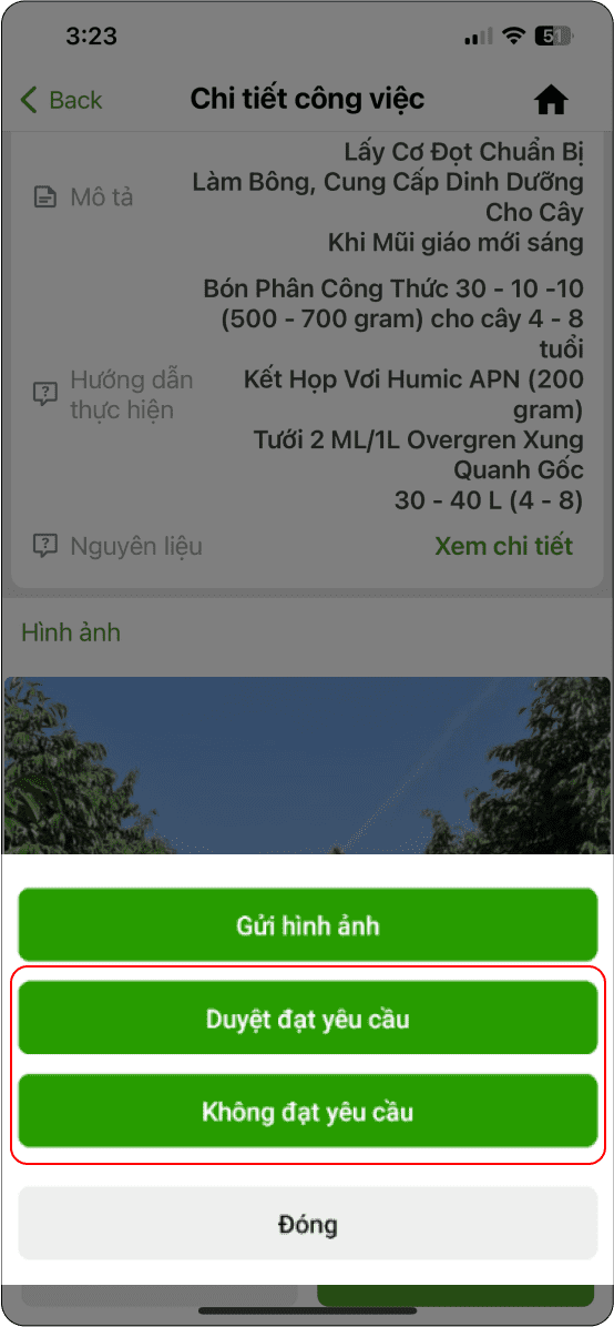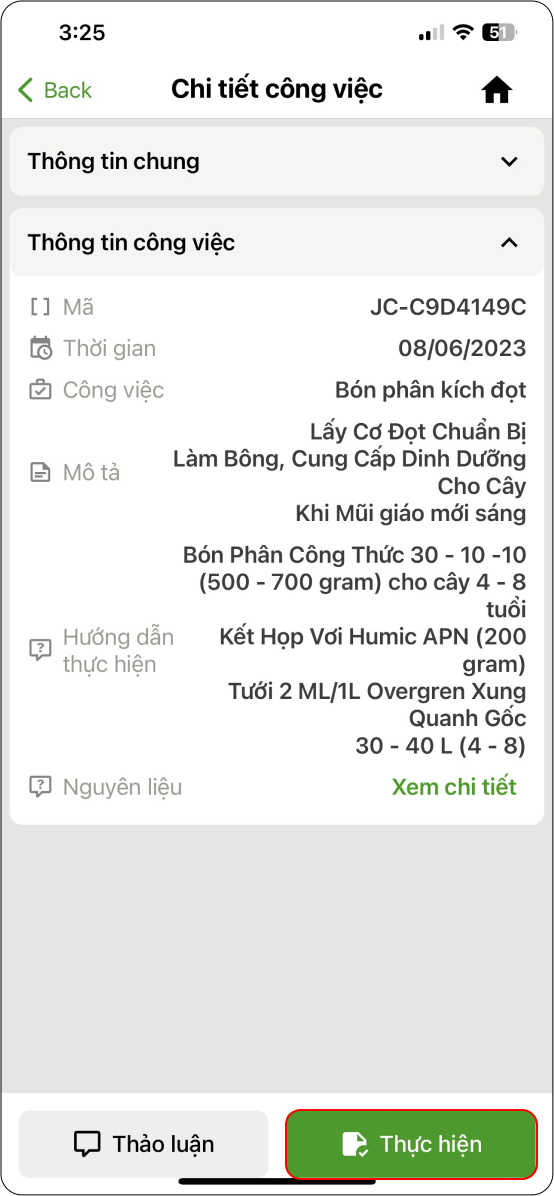 - Trường hợp công việc không sử dụng vật tư đầu vào →bước xác nhận hoàn thành công việc
