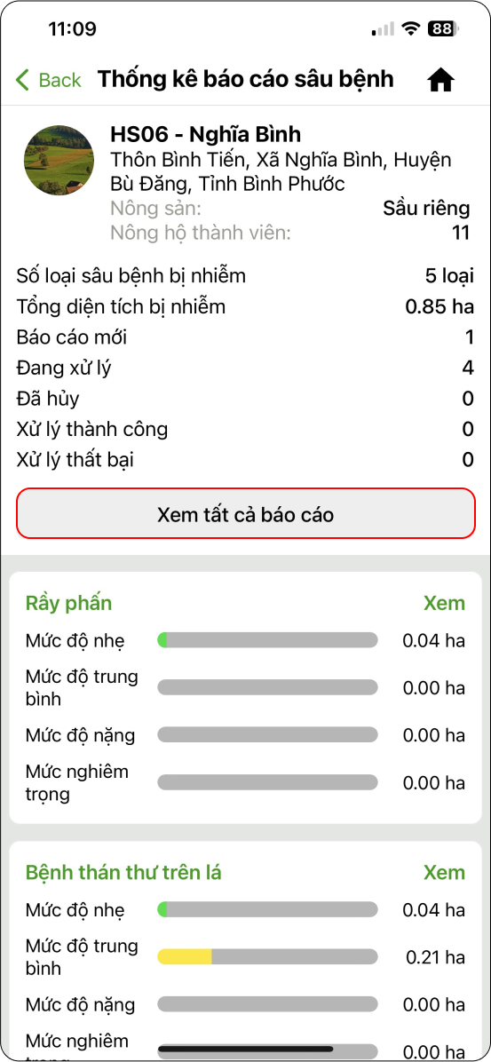 → Xem tất cả báo cáo hoặc chọn theo từng loại bệnh (Hình 3) → Chọn vào báo cáo bệnh để xem chi tiết (Hình 4).