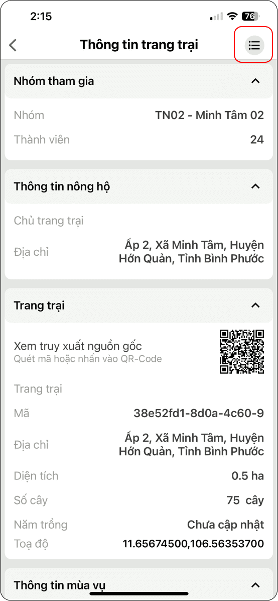 Nhấn vào chức năng “Thông tin trang trại” (Hình 1).