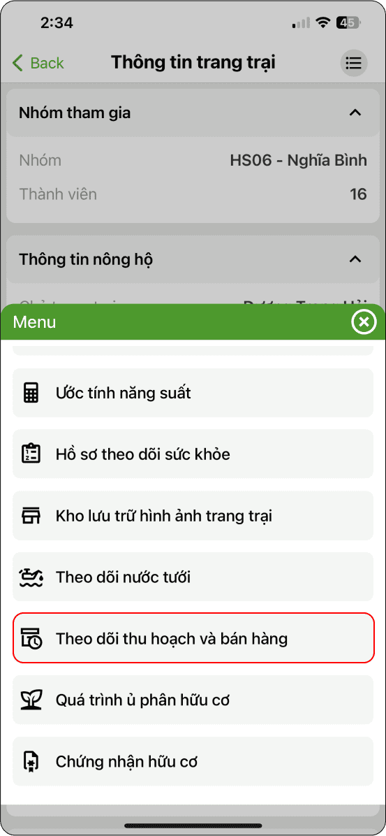 → Nhấn vào “Theo dõi thu hoạch và bán hàng” (Hình 3)