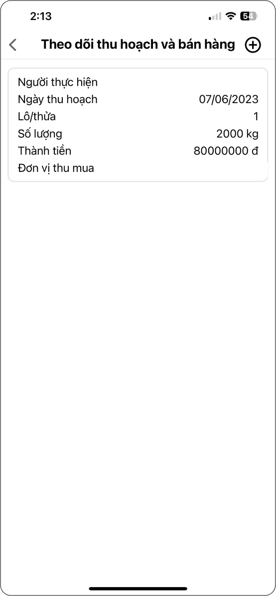→ Nhấn vào biểu tượng (+) và điền thông tin thu hoạch (Hình 4) → “Tạo ghi nhận” (Hình 5).