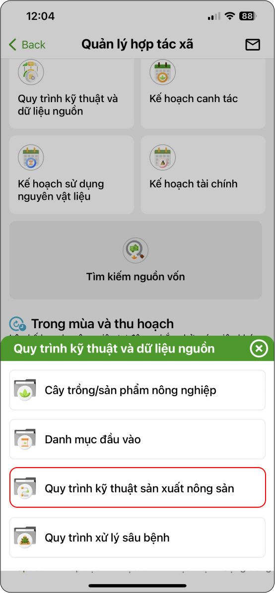 → Chọn “Quy trình kỹ thuật sản xuất nông sản” (Hình 3).