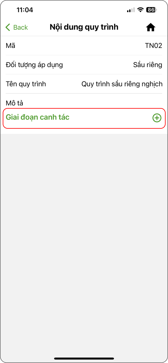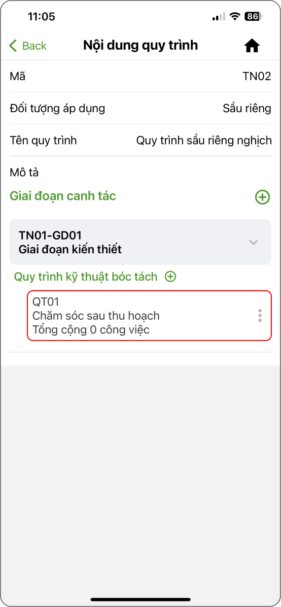 → Tạo giai đoạn canh tác (Hình 5) → Tạo quy trình kỹ thuật bóc tách cho giai đoạn ( Hình 6).