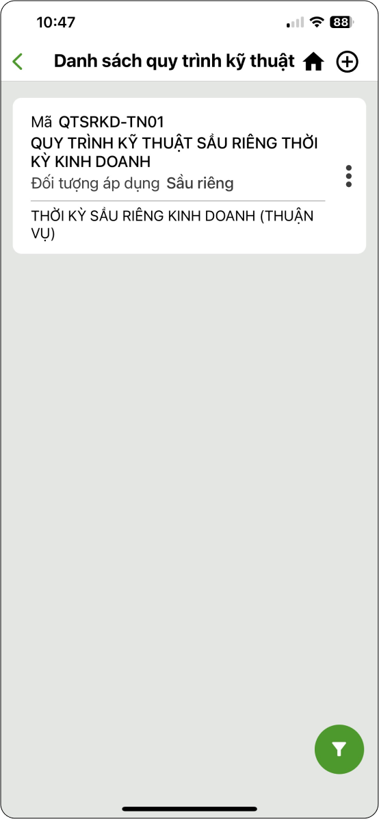 → Danh sách các giai đoạn và quy trình bóc tách (Hình 11) → Danh sách quy trình kỹ thuật sản xuất nông sản QT00 (Hình 12).