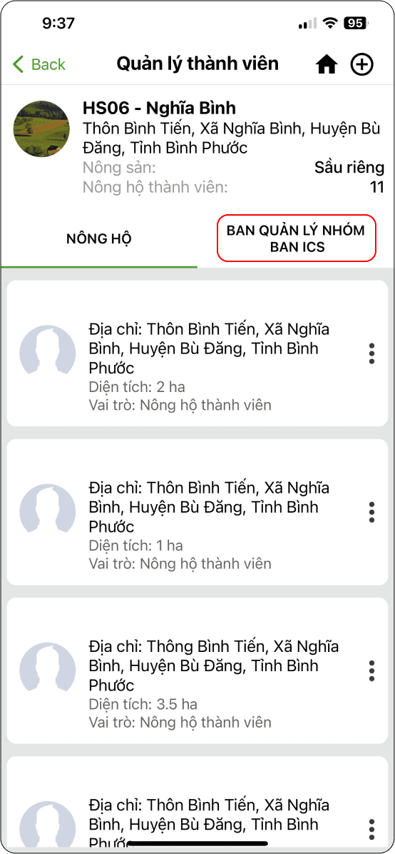 Mỗi nông hộ sau khi đã được định danh và có nhu cầu tham gia các nhóm liên kết để thực hiện canh tác trên trang trại.