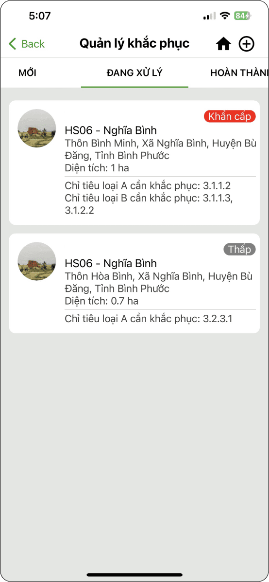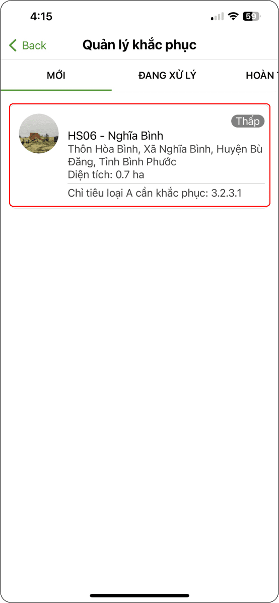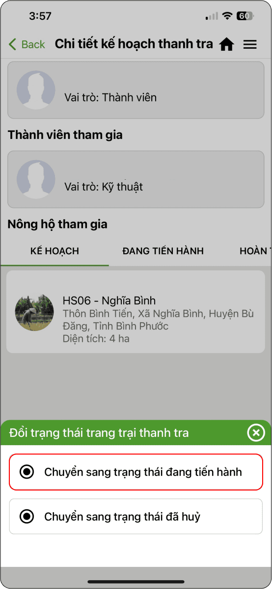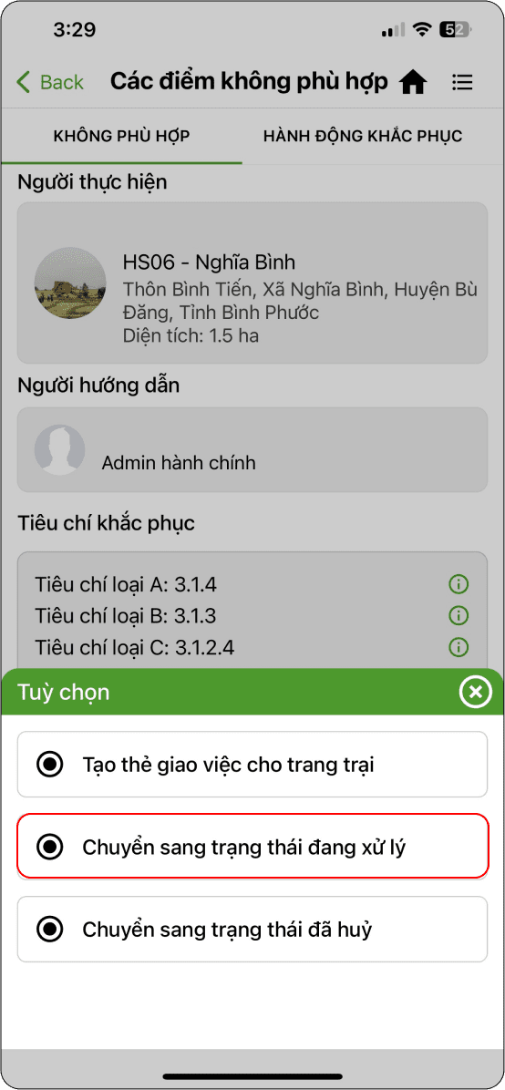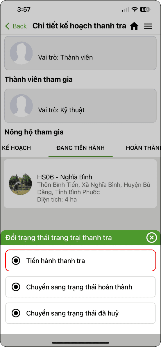→ Ở trạng thái đang tiến hành, chọn trang trại cần đánh giá (Hình 3)