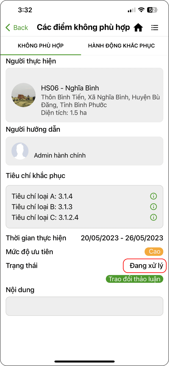 → Điểm không phù hợp ở trạng thái “Đang xử lý” (Hình 3)