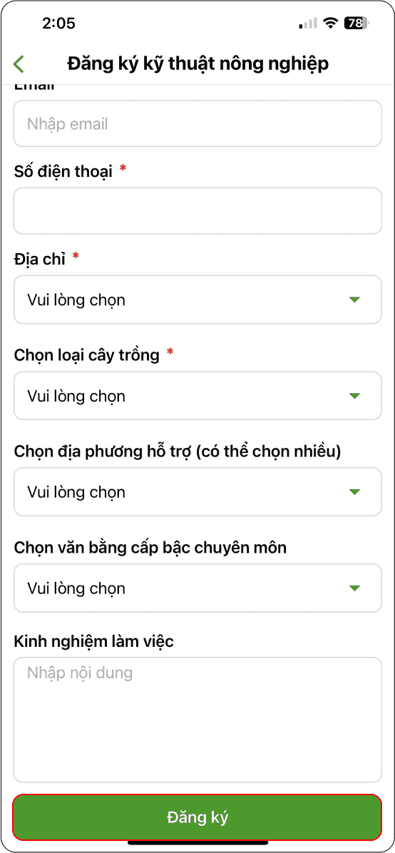 Nông hộ đăng ký thành viên khai báo thông tin trang trại