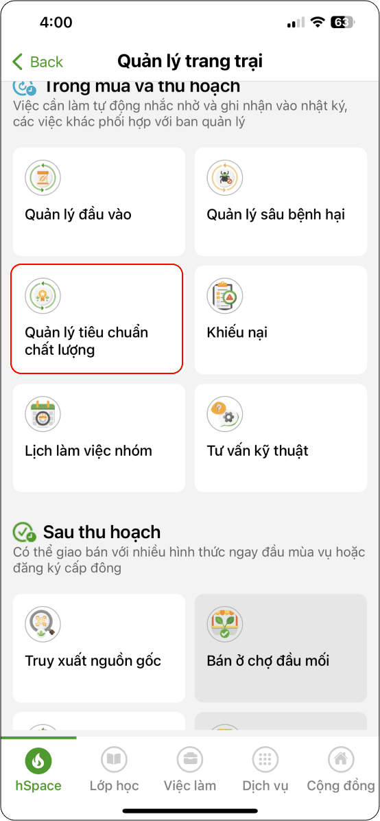 Đăng nhập vào ứng dụng → Chọn phần “Quản lý trang trại” (Hình 1)