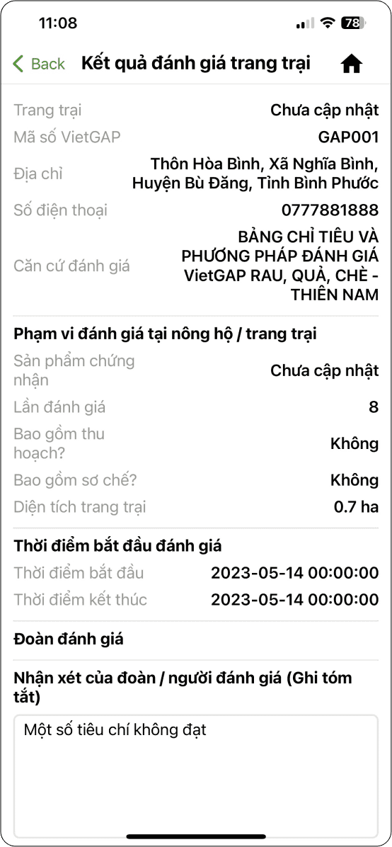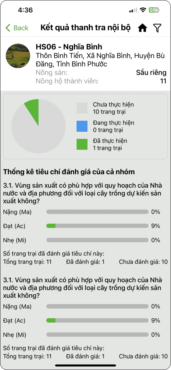 Nông hộ xem kết quả đánh giá của trang trại