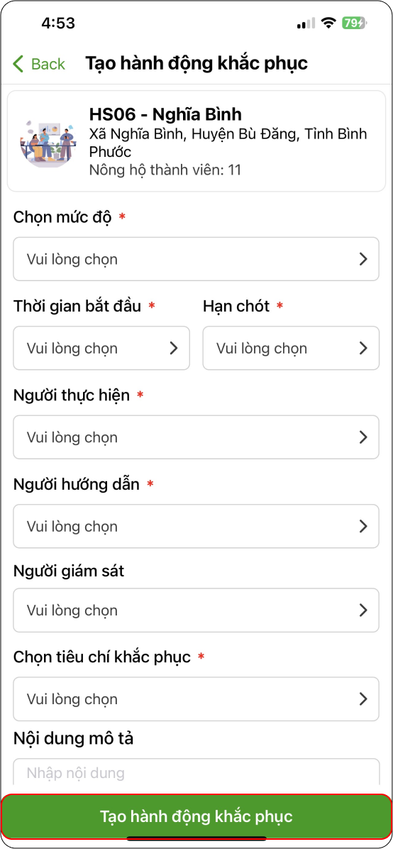 → Điền thông tin và nhấn “Tạo hành động khắc phục” (Hình 4)