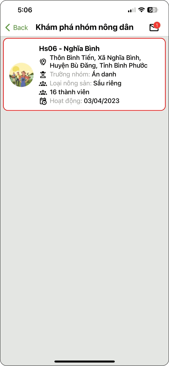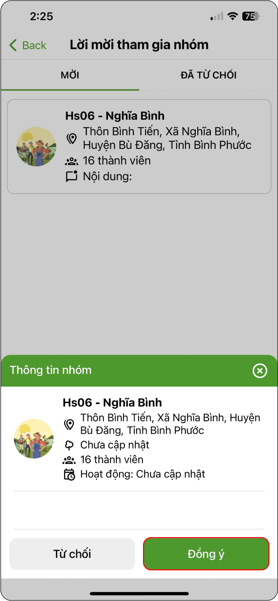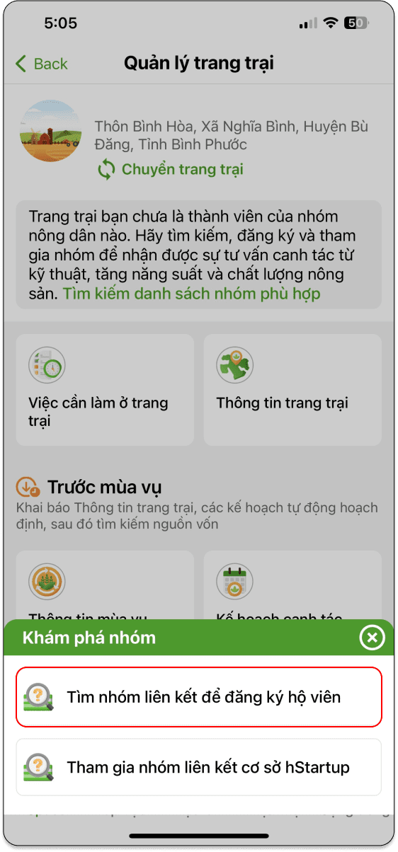Nông hộ Tìm kiếm và tham gia nhóm.