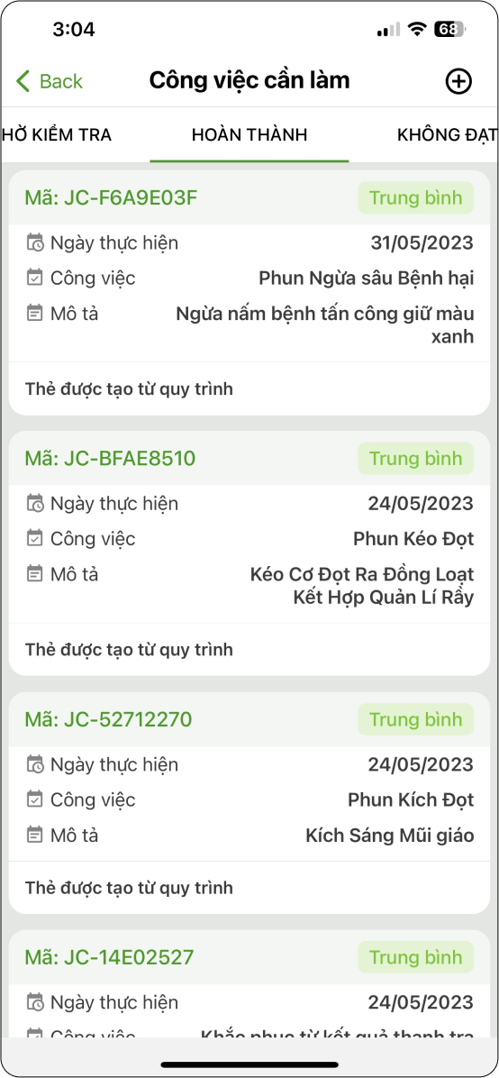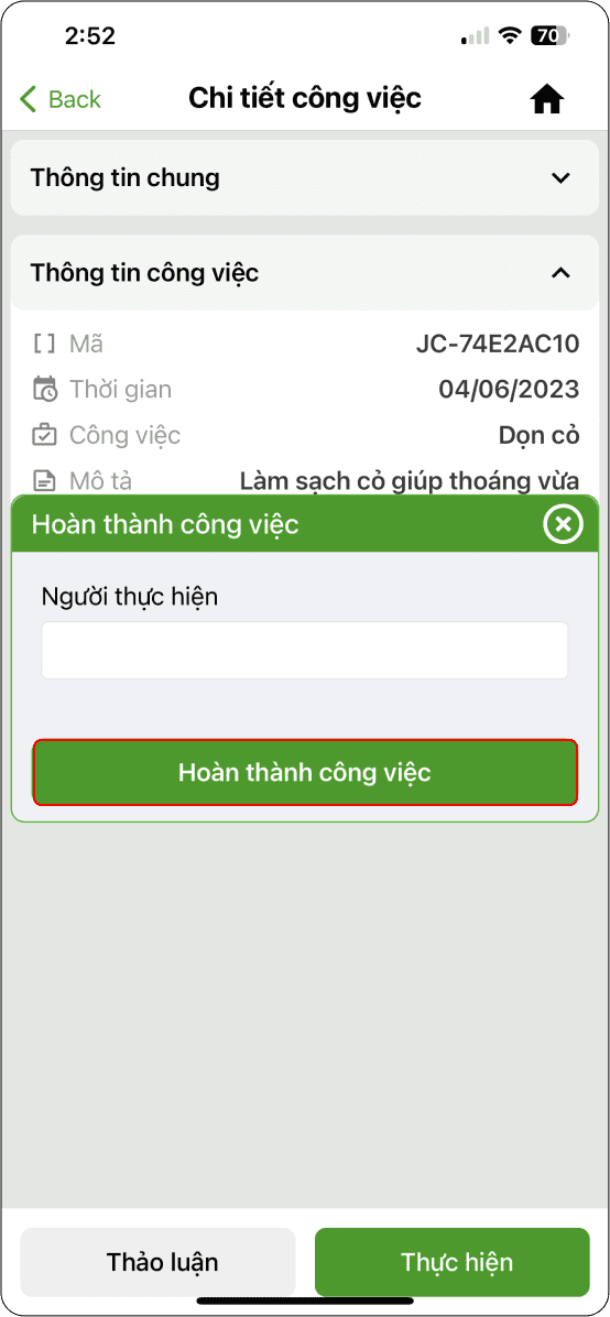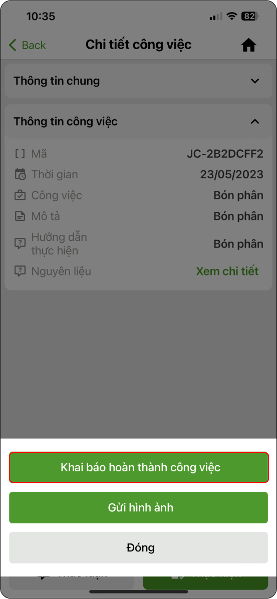- Trường hợp công việc không sử dụng vật tư đầu vào →Xác nhận hoàn thành công việc.