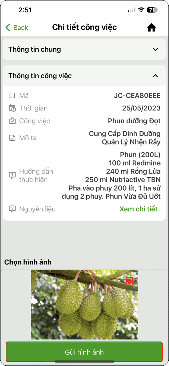 → Thực hiện công việc xong, nhấn gửi hình ảnh (Hình 5)