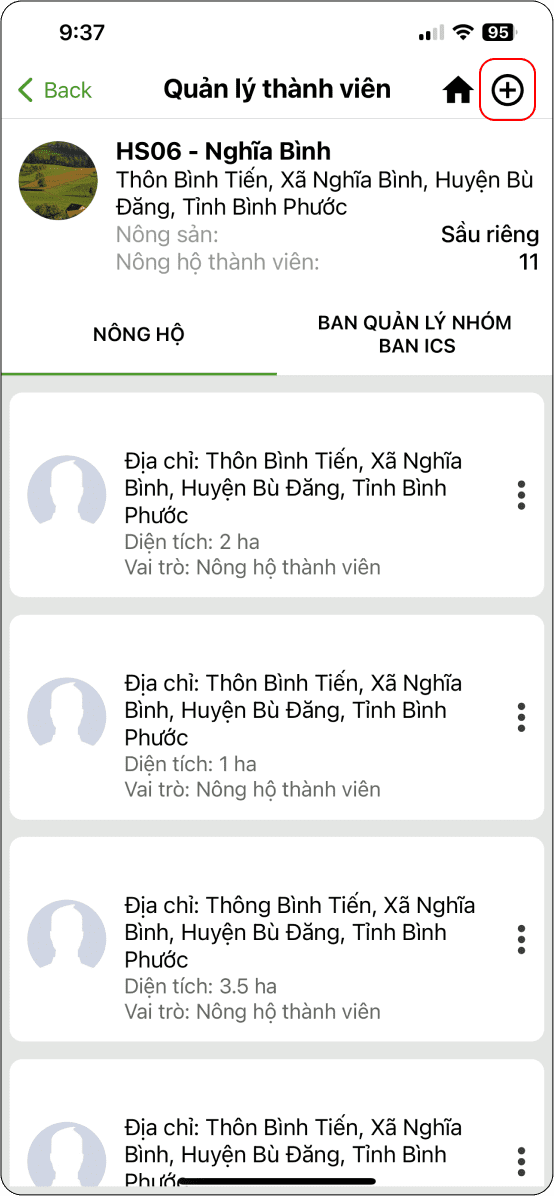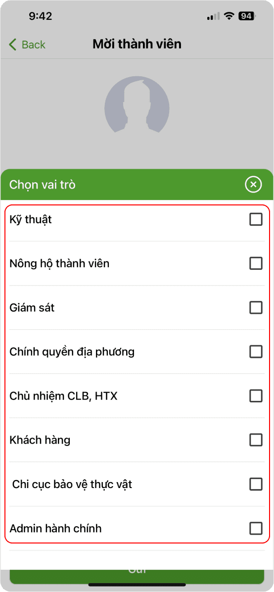 Mời thành viên tham gia vào nhóm nông hộ