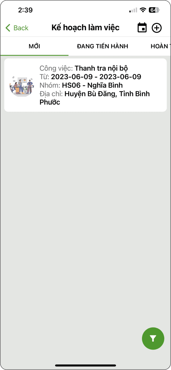 Hiển thị danh sách trang trại tham gia thanh tra và trạng thái trang trại là “Kế hoạch: (Hình 2)