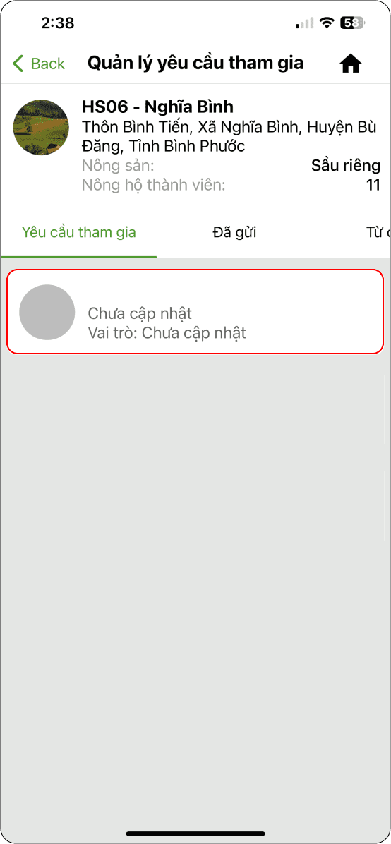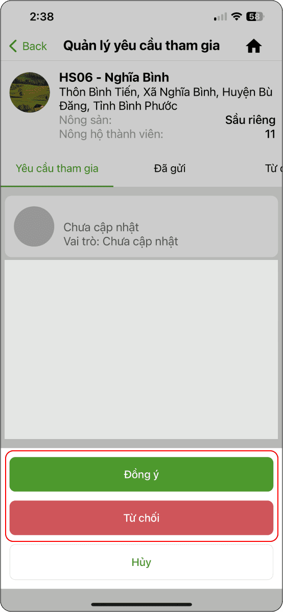 Nông hộ xác nhận yêu cầu từ Nhóm nông hộ.