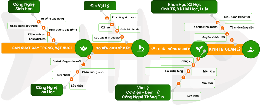 Đào tạo nguồn nhân lực nông nghiệp số, nguồn nhân lực khoa học nông nghiệp, kinh tế nông nghiệp (hSchool), chuyển giao công nghệ, mang khoa học vào nông nghiệp phát triển giá trị gia tăng, đầu tư và thu hút nhân tài về nông thôn (hStartup)